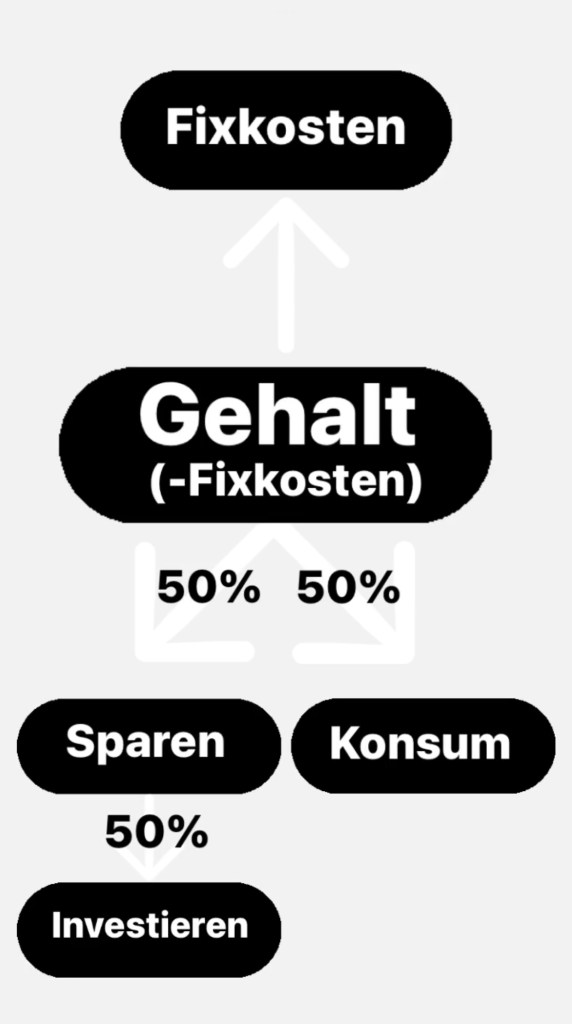 Was ist damit gemeint? Eigentlich nichts anderes als eine persönliche Kostenübersicht und Geldverteilung. Viele Leute bekommen am Monatsanfang ihr Gehalt, davon gehen Miete, Nebenkosten, Autokosten, Handykosten und was nicht nicht alles runter. Du gehst shoppen, im Restaurant essen und bestellst bei Amazon. Plötzlich ist das Konto leer, weil du keine Übersicht drüber hattest, wie viel Geld du eigentlich hast und hattest. Die Möglichkeit zum investieren bietet sich nun auch nicht mehr.