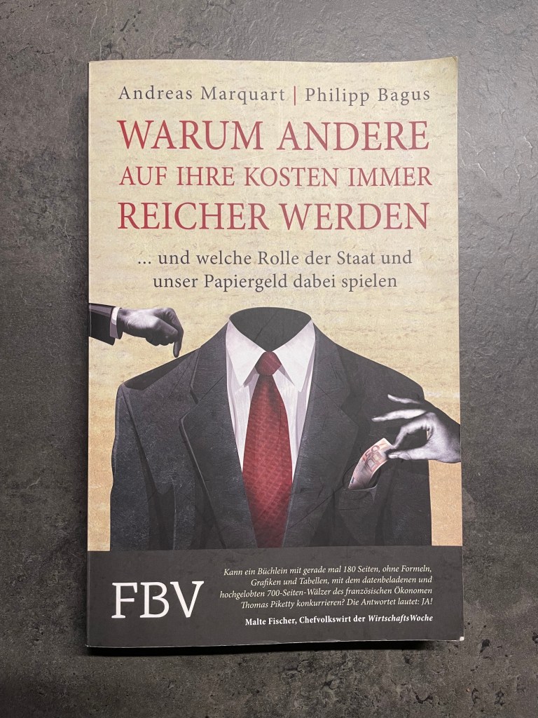 Eines der besten Bücher, die ich seit langem Gelesen habe. Hast du dich schonmal gefragt woher unser Geld eigentlich kommt? Wie funktioniert das mit dem Kredit und was ist eigentlich Inflation? Genau damit beschäftigt sich dieses Meisterwerk, anhand von simplen Beispielen wird hier die gesamte Funktion und Vorgehensweise von Banken, Staaten, Notenbanken und allen beteiligten erklärt. Würde man dieses Buch in der Schule als Pflichtlektüre einführen, hätten einige Institutionen ein ernstzunehmendes Problem. eine berechtige frage im Buch: „Niemand vertraut Banken und Politik, aber warum sind es unsere ersten Ansprechpartner wenn es um unser Geld geht?“